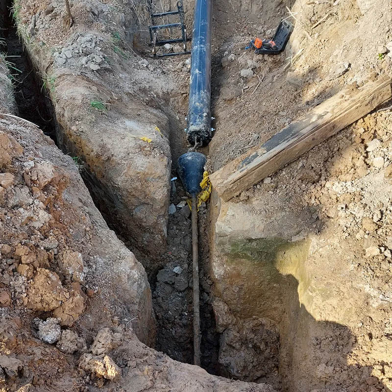 Выполнили прокол 15 метров с протяжкой трубы 160 мм для футляра с протяжкой в футляр трубы 63 мм для строительства газопровода.